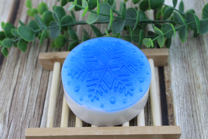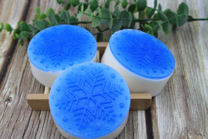 Sparkling Snowflake Soap is crafted with a layer of goat milk soap topped with a beautiful blue spakeling snowflake. It brings a touch of seasonal elegance to your everyday skincare routine. The soft, creamy lather and gentle cleansing properties, make this bar suitable for all skin types, a wonderful choice for the whole family. Whether your skin is dry, sensitive, or somewhere in between, this bar offers a comforting and nourishing cleanse.